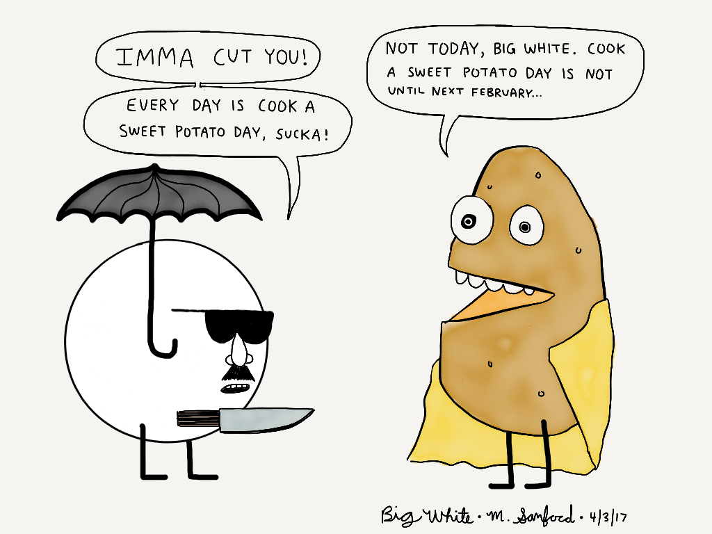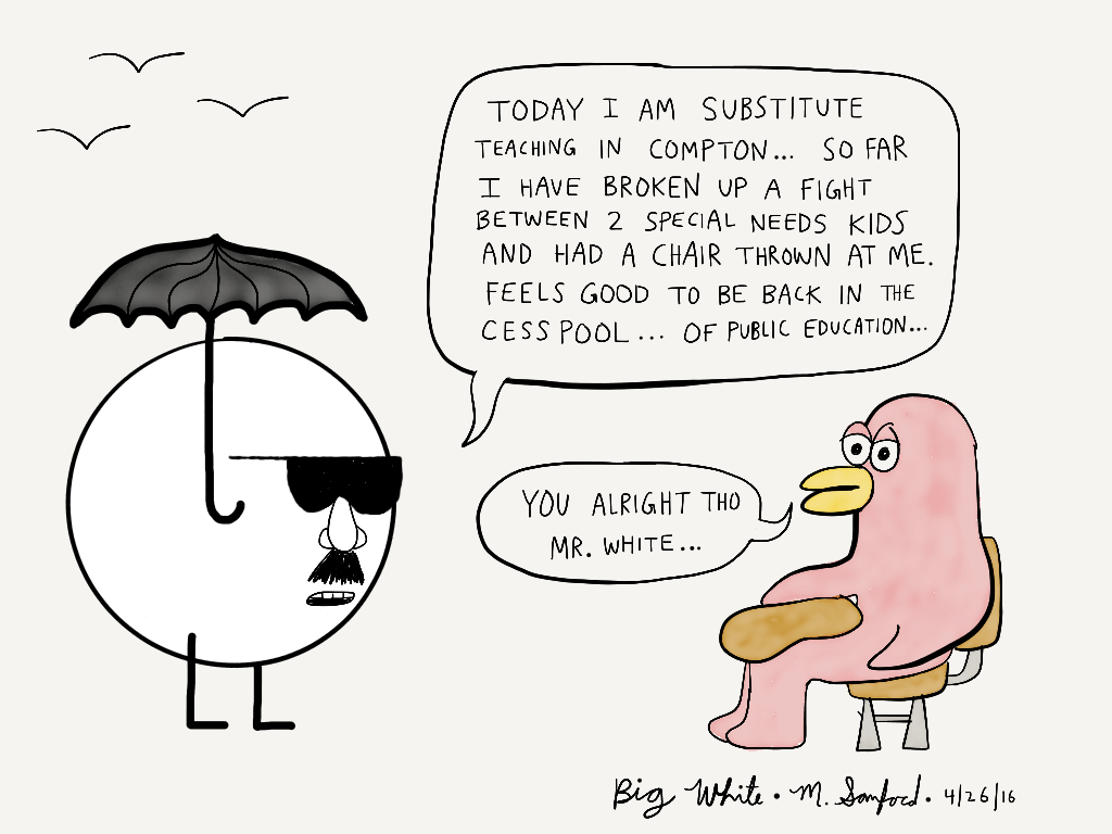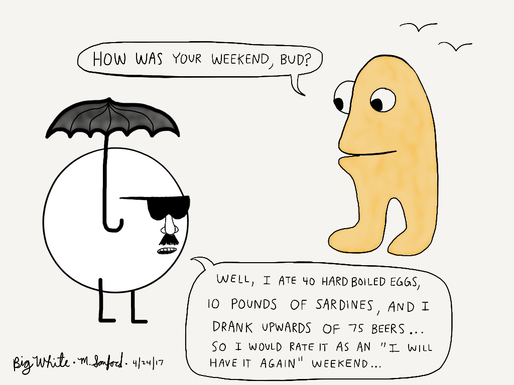 Hi Guys. Welcome to the Big White Comic website. This has been several years in the making. I created Big White about 5 years ago while living in Baltimore, MD. I started drawing him on old pizza boxes, friend's walls, concert flyers, and I just could not get enough of the little fellow. I recently started publishing the Big White Comic on various social media sites and thought I better have a website. Well, here we are. "Armed with an umbrella and a classic disguise, Big White is set to take on the world."