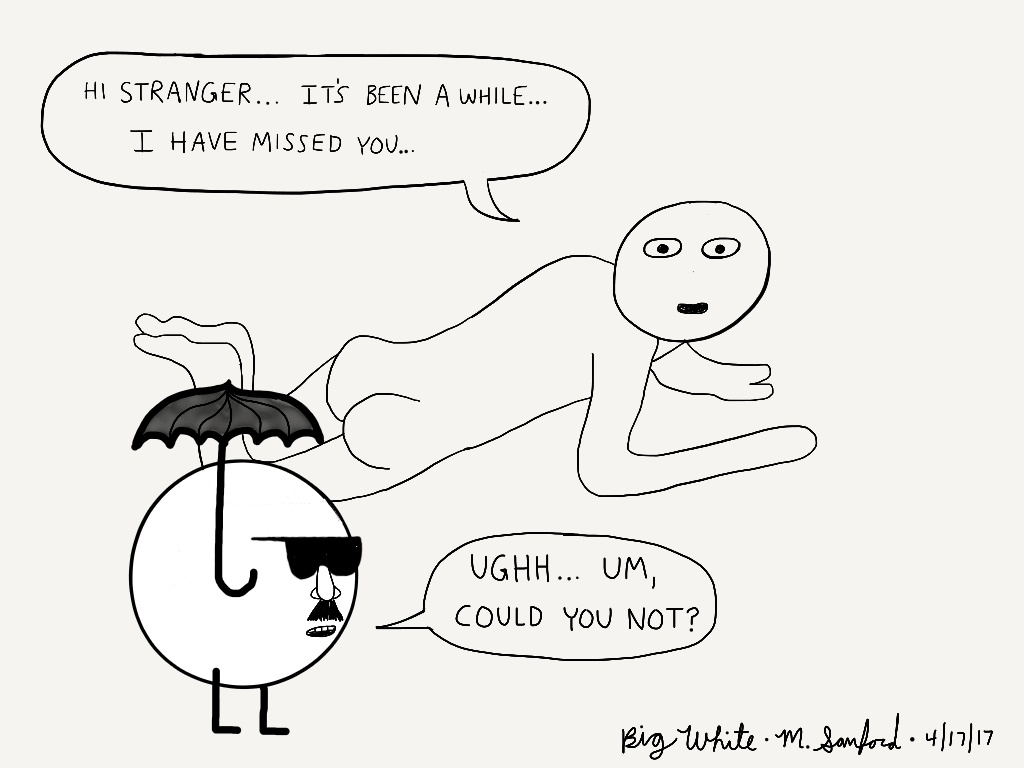 Well my friends, it has been quite a journey. I started the drawing the Big White Comic in November, it is now the end of March. We made it through the harsh winter. "So many things died... So many things born..." I quote my old roommate, Lucas Rambo, from one of his songs about the changing of the seasons. I feel like Big White is just getting started really.