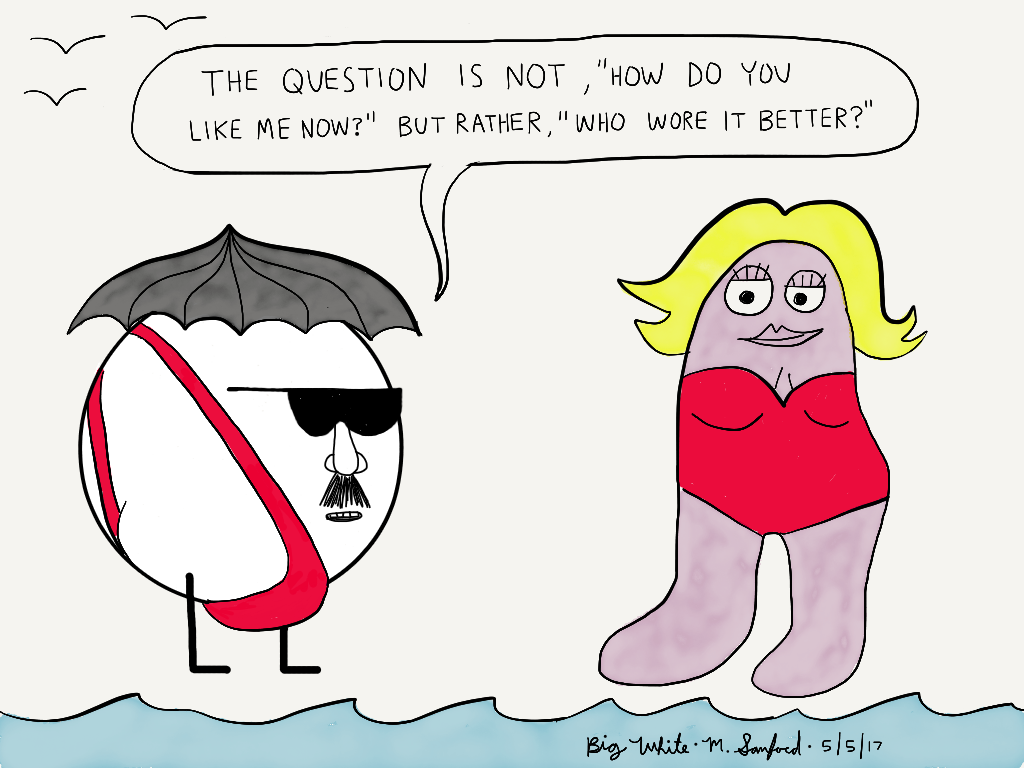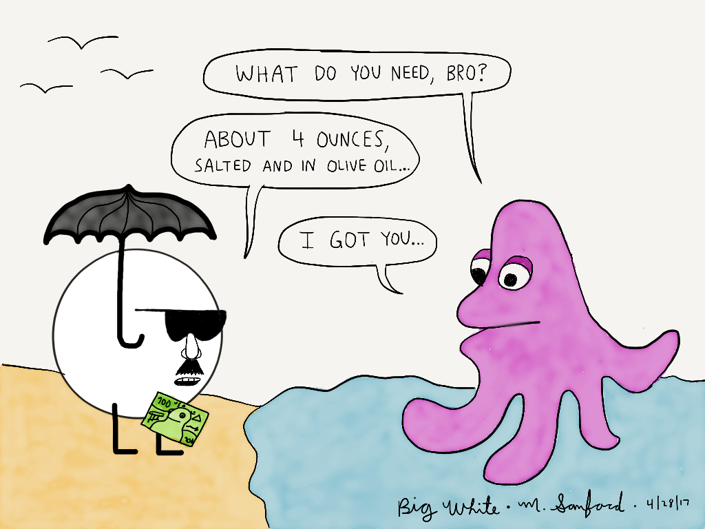 I have not looked at this website in quite some time. Landing here today has inspired me to restart Big White ASAP and return to regular updates on this BLOG. Ergmas. Long story short, last year I was off to a great start creating Big White Comics nearly everyday, and then something happened. I was hired. Well, I got hired as an Assistant Director to work on a Social Media Campaign for a Hotel Company. I was busy, traveling all over to work on these commercials and Big White fell by the wayside. Sorry to say that, I truly am. During this period of work I also damaged my IPAD which I create Big White on and was not able to draw and then time flew by.